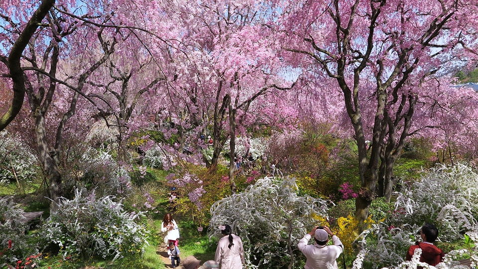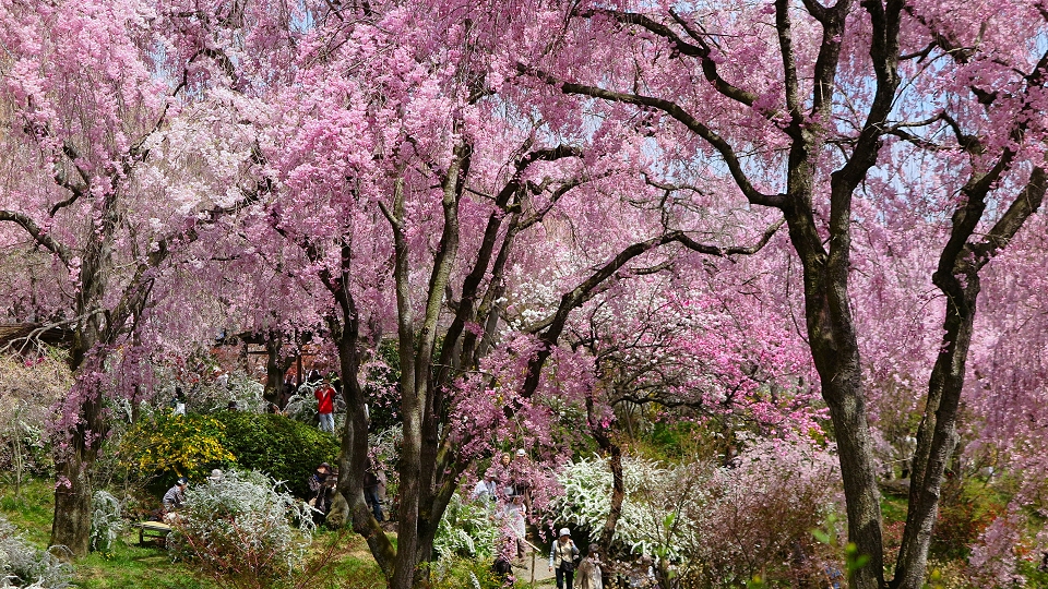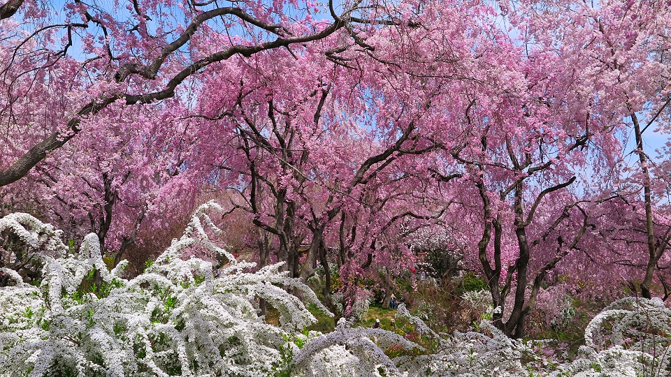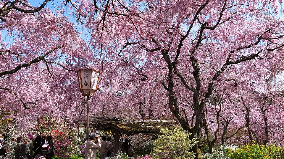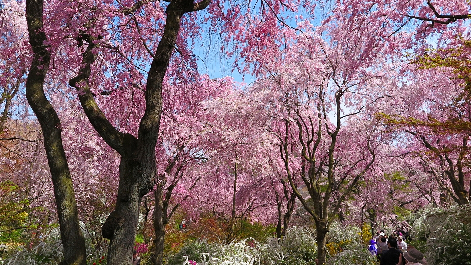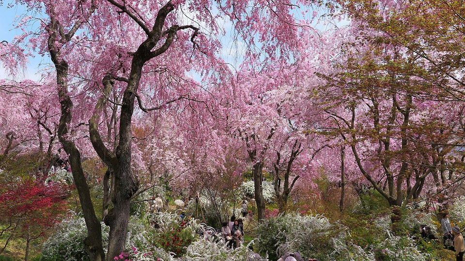 この時期、近くの仁和寺の御室桜は有名だが、この原谷苑を見るときは、 必ず仁和寺のほうを先に見る。というのが鉄則だ。