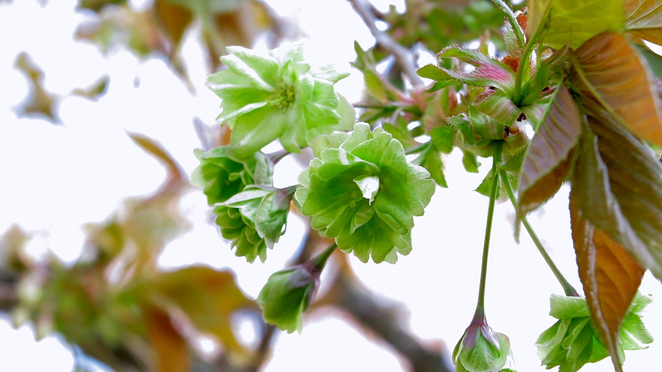 そんでもって、とっても珍しい緑色の桜「御衣黄」、こちらは造幣局にもあります。
