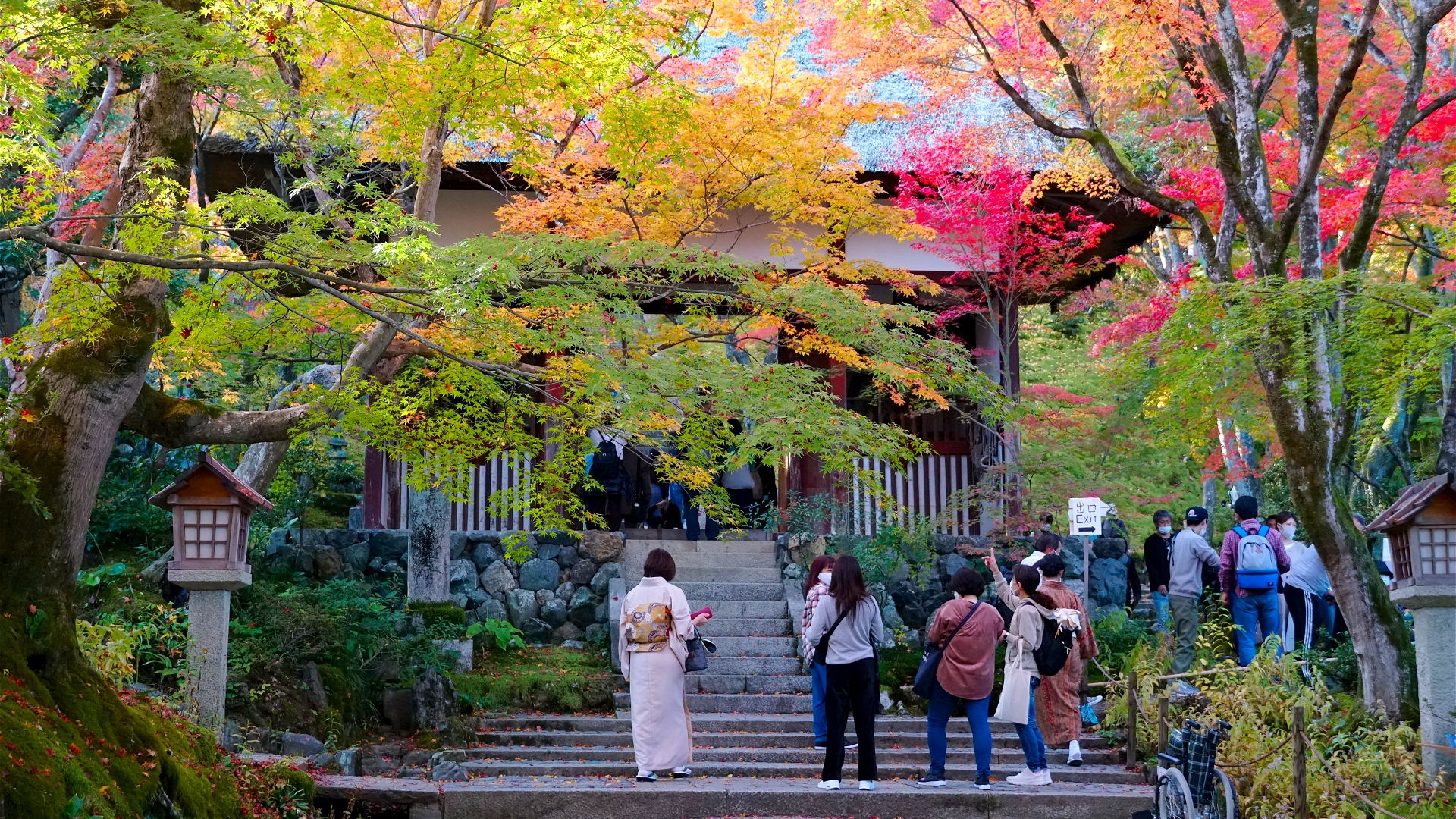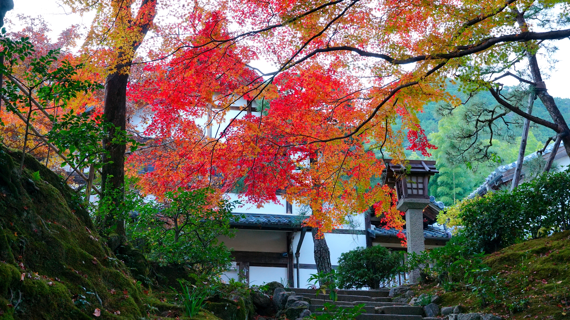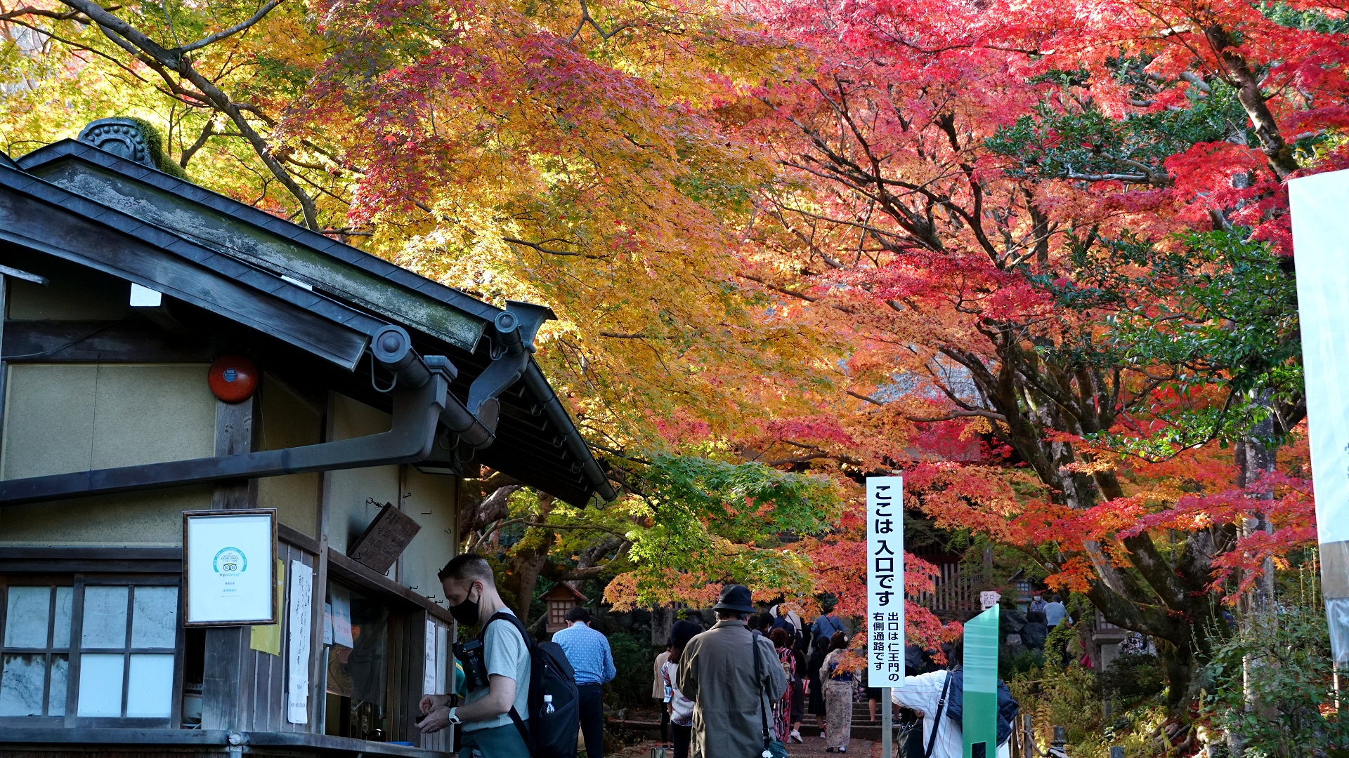 秋の京都・紅葉たび、今回は嵯峨野の常寂光寺です。 今まで何回か門の前を素通りいていたことはあるのですが、中に入るのは何十年振りかなぁ・・・と というのも、外から見えるとこlが結構もみじ色をしていたので・・・ それになんだか人も多い・・・