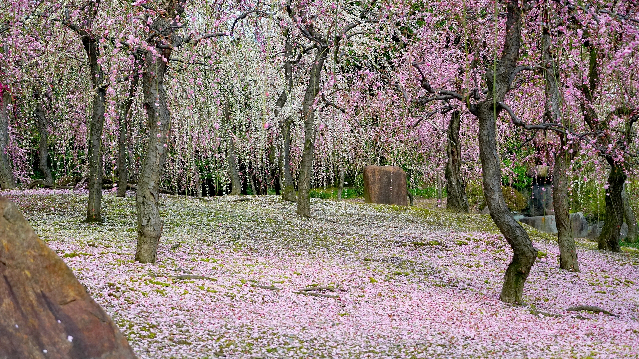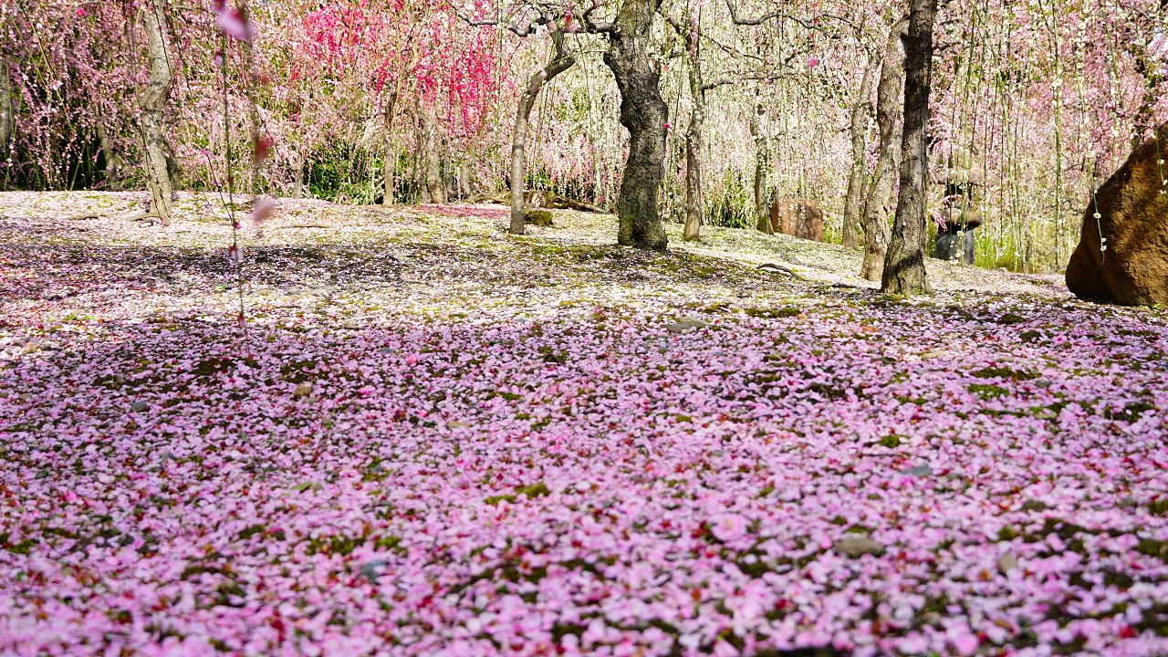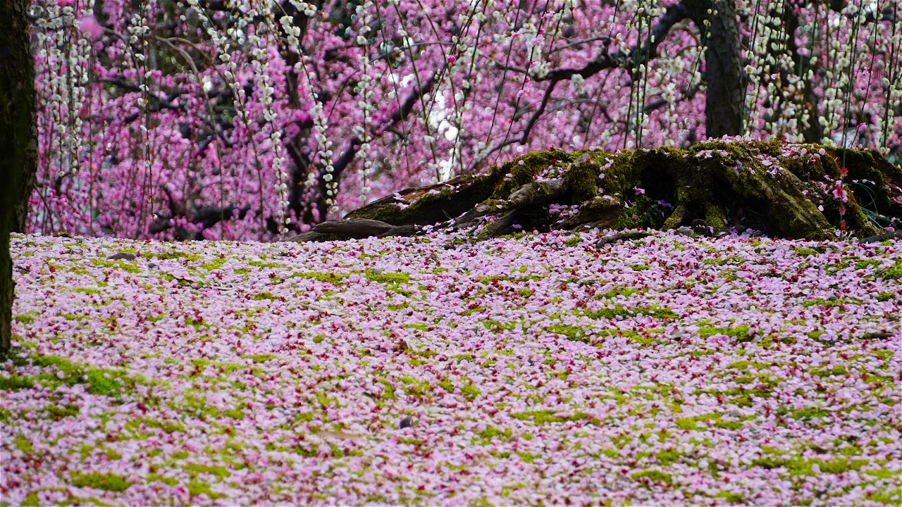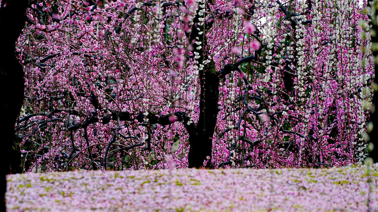 桜吹雪ならぬ梅吹雪・・・、初めて見た