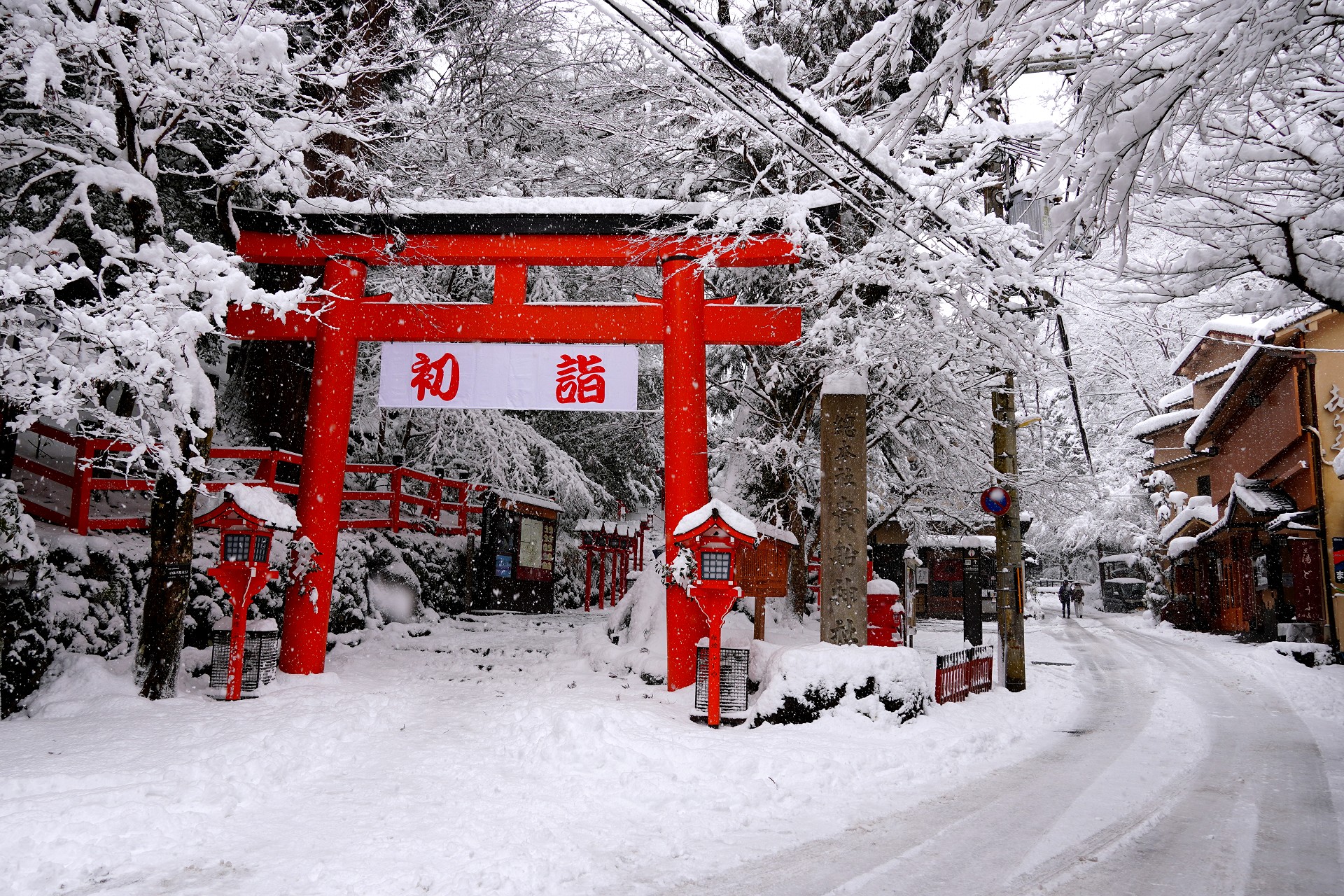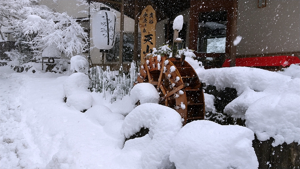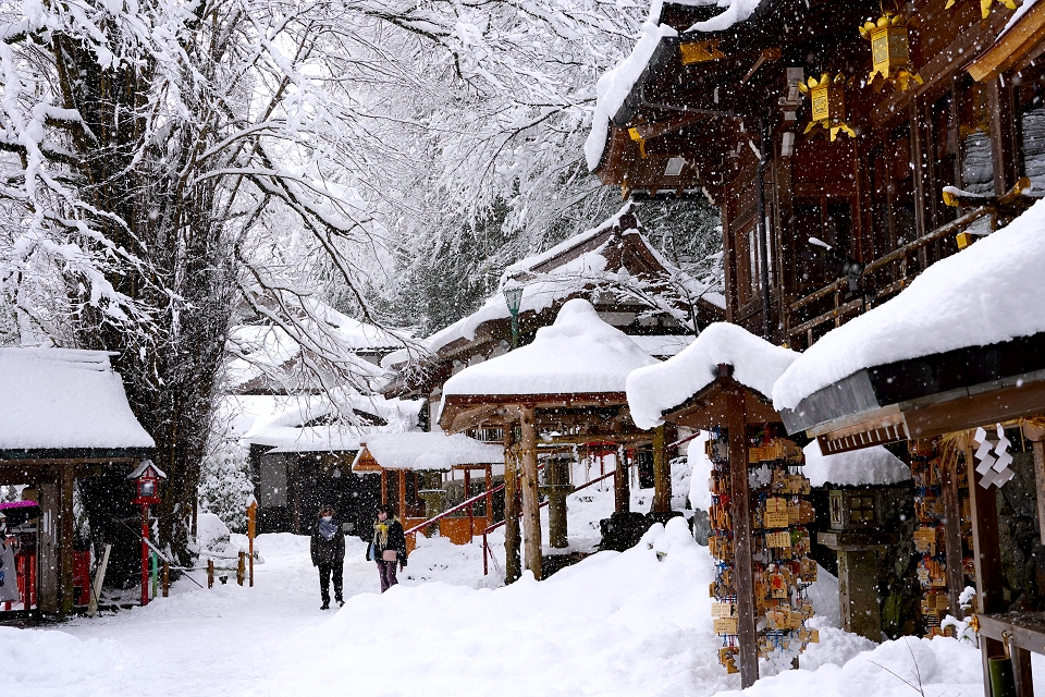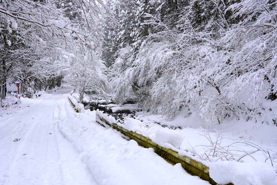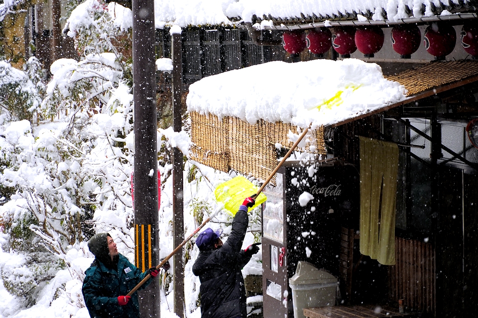 帰りは何事も書く参道を通り抜け 雪かき中の料亭を見て…