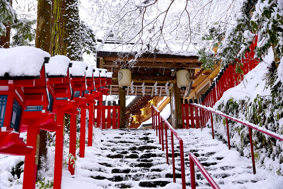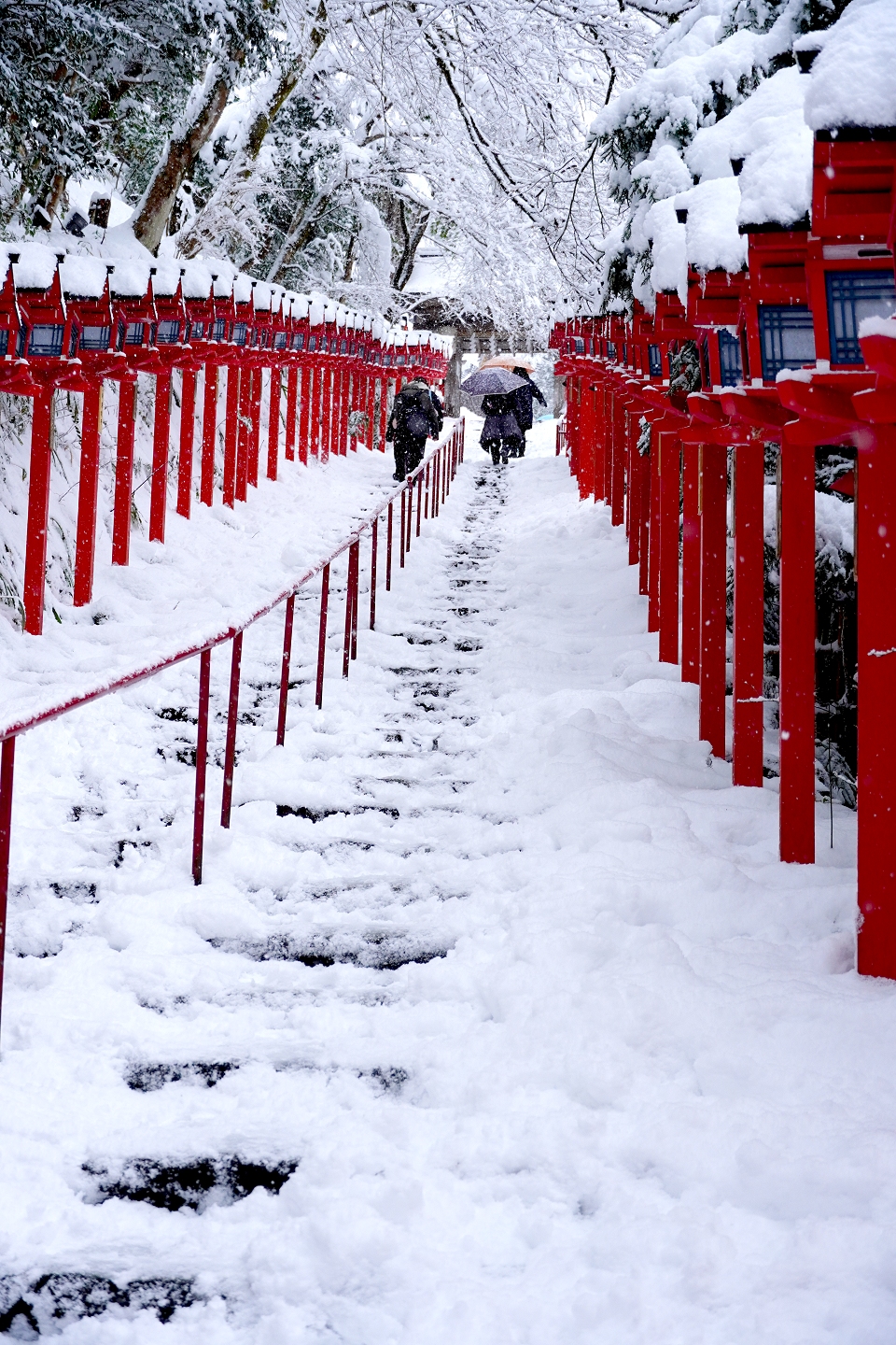 最期の数段、ここが一番やばかった・・・ 下から見るとまだ石段が見えるが、上から見ると真っ白けなのよ… 手すりには全く雪がない、ということはみんな手すりを頼ってる・・・ Oichanも左手でカメラをささえ、右手はしっかりと手すりを・・・ やっぱ何回かふんばりどころも・・・