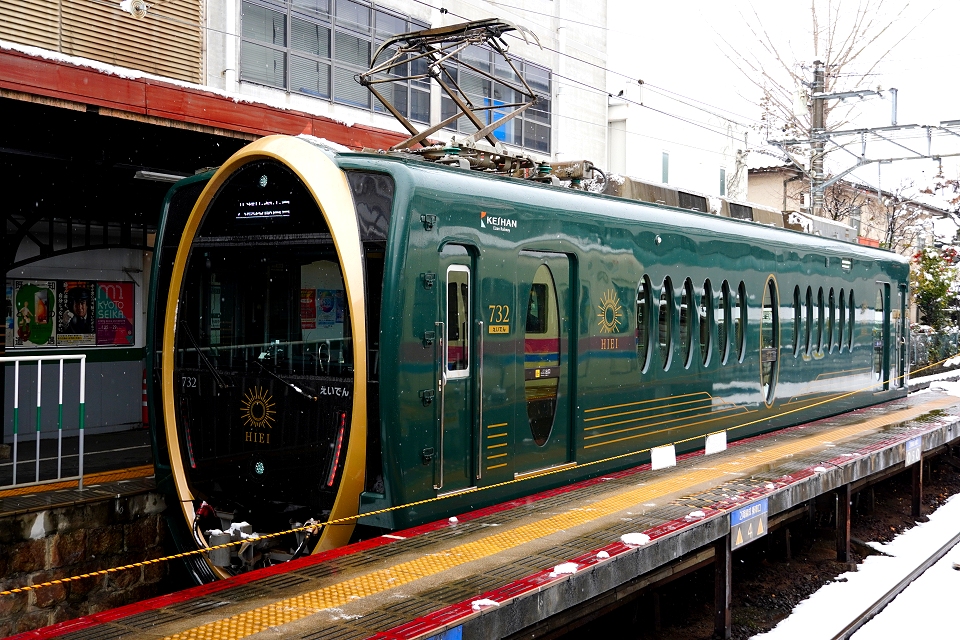 ここで乗り換え叡山電車に・・・ 向かい側のホームには妙な電車も…