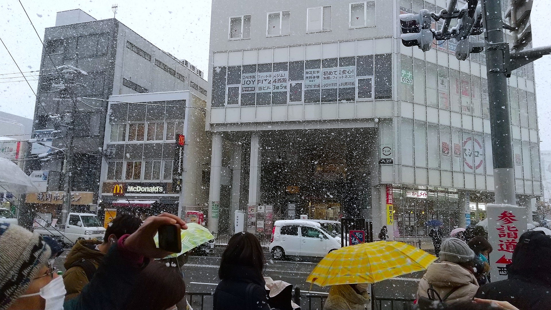 あちゃ~傘を持ってきてない。ま、いいか雪だったら・・・ でも結構降ってます・・・