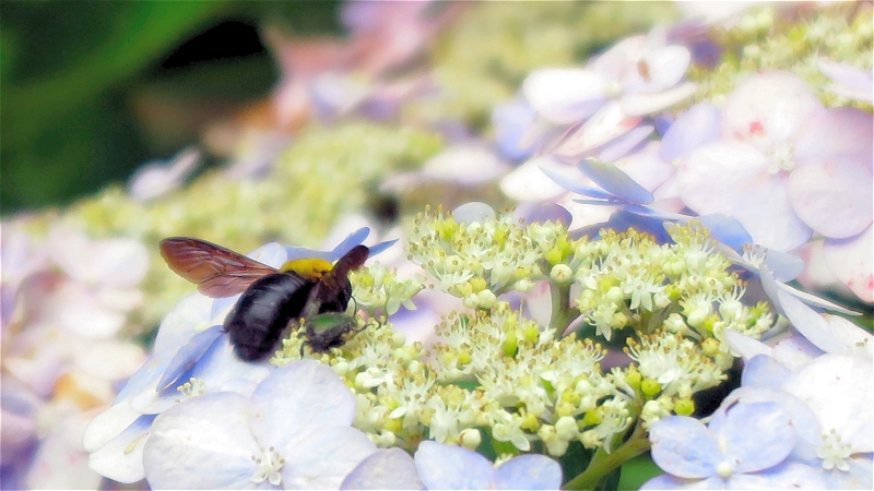 こちらはちょこっとおまけ、クマンバチとコガネムシ君も仲良く・・・