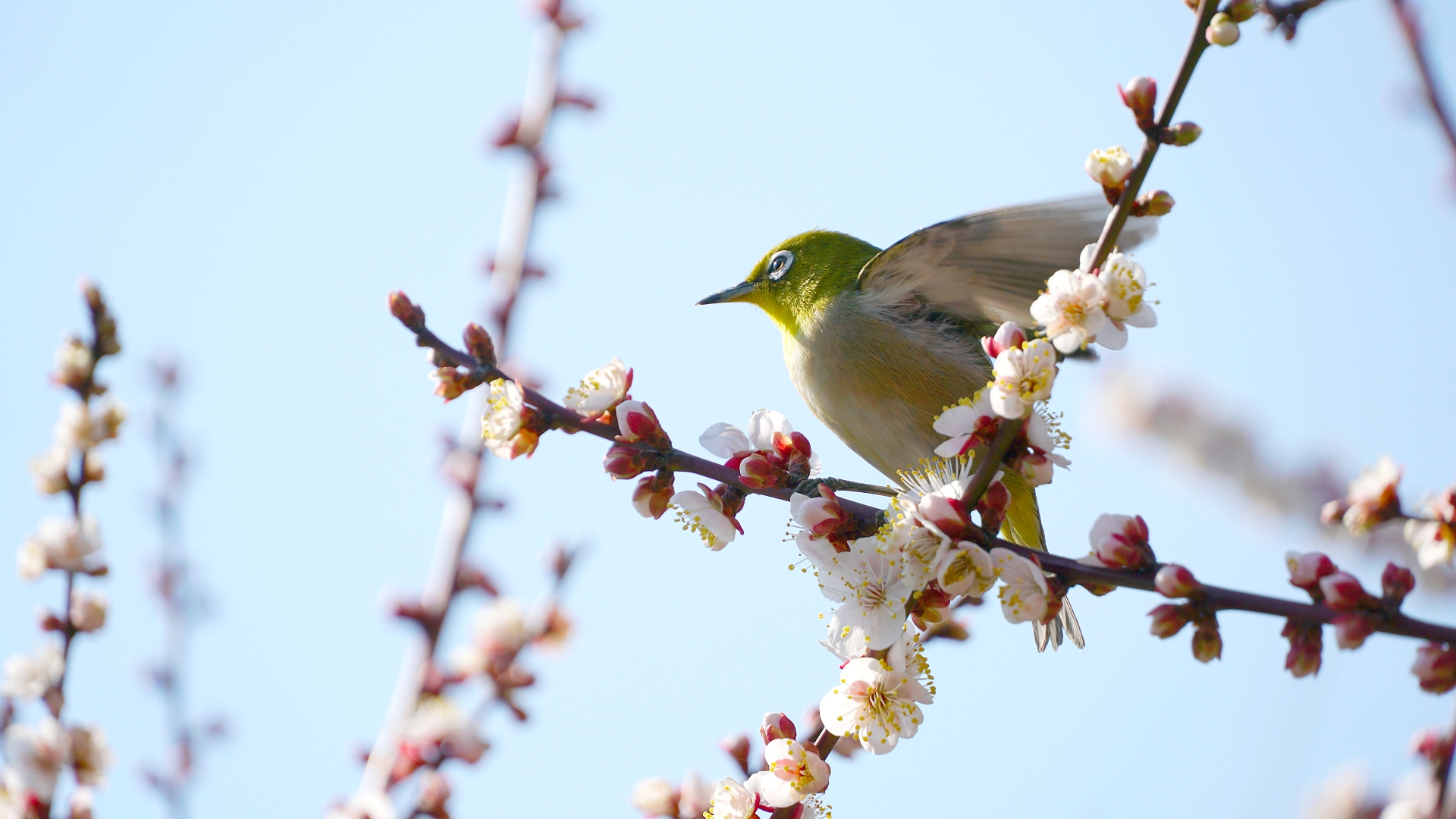 そういえば、梅と言えばウグイス・・・ ではなくメジロさんがいるなぁ・・・ ウグイスは鳴き声はいいけど、色は決してウグイス色とは言えないし、主食は花の蜜ではなく虫さん・・・ こんな所にいるわけがないです・・・